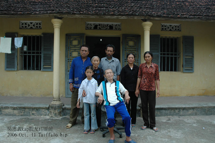 (作者為成功大學台灣文學系副教授、台灣羅馬字協會理事長) 相會在異地越南的兩個台灣同鄉(中文版) 蔣為文 前些日子接到從越南退回來的信件,仔細一看竟是「吳連義」老先生及其家庭成員的相片。原本心中遁藏許多納悶,但在前天閱讀到許昭榮先生刊載於自由時報的「越南最後一個台灣兵」後,頓時找到了答案。 2006年10月我在越南社科院史學所「丁光海」教授的協助下,來到位於越南北部寧平省一個農村的吳連義家中。或許這是自1994年吳連義曾短暫回台二個月後的十多年來,難得一見的台灣同鄉來訪。即使我和吳老生平素未謀面,當我一踏進宛如台灣早期土角厝的吳老家中,吳老已淚流滿面,激動的身軀更突顯他即使因病而無法自由行動卻也要起來歡迎來自台灣的同鄉。我很自然地用台語向他打招呼,只見他以眼淚回報。據他太太Ninh Thi Be (寧氏細)所述,吳老於一年前因跌倒以致行動不便且無法言語。 吳連義的住處雖然簡陋,但仍擁有一書架用日文書寫、關於台灣的書籍,譬如《台灣の前途》《台灣の政治》《激動のなかの台灣》《李登輝學校の教え》《台灣がめざす未來》《台灣に革命が起きる日》。這些書多年來一直陪伴著吳老,似乎也是因為他的思鄉之切才能感動天公伯讓二個互不認識的台灣人在千里外的他鄉落淚相逢。 吳連義於1944年被日本「台灣拓殖會社」調派到越南工作,之後便留在越南並曾加入越共部隊協助越南獨立建國的大業。10月份的拜訪本來要訪問吳老對於1945年日本投降後蔣介石代表聯軍佔領越南北部之一事是否有深入的了解,可惜他已無法言語。如果早幾年知道吳老的音訊,或許可以從他的口中了解何以越南領導者胡志明能看穿蔣介石佔領越南的野心而近一步聯合法國勢力將蔣介石趕出越南;相形之下,同樣被蔣介石佔領下的台灣,當時的知識份子卻沒有像胡志明這般的犀利眼光,導致現在的台灣處處受中國魔咒的折磨。 或許吳連義老先生當初也是為他來自千里外的同鄉所受的折磨而流下無法拭盡的眼淚。只是這個答案隨著他的安息而埋葬在千里外的他鄉。 (作者為成功大學台灣文學系副教授、台灣羅馬字協會理事長) 越南最後一個台灣兵 ■ 許昭榮 Đ原載自由時報2007.01.06自由廣場 http://www.libertytimes.com.tw/2007/new/jan/6/today-o3.htm 二次大戰結束已經六十一週年,國共內戰定局也將近一甲子,但台籍老兵的悲情,卻仍持續在海外延燒。 過年前,日本產經新聞引述越南河內(胡志明市)共同通信社報導:「二次大戰期間,在法領印度尼西亞擔任日本軍特務機關人員,戰後被遺棄在越南的台灣人吳連義,於十二月十四日死亡於越南北部林敏省(譯音)的住宅。享年八十三歲。他的辭世直到廿五日才被人發覺。」 報載:二戰期間被日軍徵召到越南而在當地迎接終戰的台灣人,推測約三百人,而吳連義被認為是戰後滯留越南台灣人當中最後一位生存者。 這篇報導篇幅不大,但足以提醒日本政府及台灣人,尤其是研究台灣近代史的學者:「台灣人的戰爭尚未結束」! 據報導,吳連義乃一九四三年畢業於嘉義農林學校(現在的嘉義大學之前身)。翌年(一九四四)以「台灣拓殖社員」之名義被徵召到越南北部日軍進駐地域的農業試驗場工作。戰爭末期被調到特務機關服務。 終戰後,他投入胡志明所領導的「越南獨立同盟」參加越南獨立運動。 一九五四及五九年,他曾經兩度透過紅十字會向日本駐越機關要求隨同日本軍民撤回日本,但因出身「台灣人」而被排斥,繼續滯留北越,並且與越南女性林悌培(譯音)結婚,營農為主。 一九九二年,吳連義向日本駐河內大使館申訴,要求日本政府「負起責任,把他送回台灣」,但仍被拒絕;一九九四年,在台戶籍確認後,他曾經返台一次。 遺孀林氏悌培流著眼淚向採訪她的記者透露:「他常說,不願意死在此地」! 日本產經新聞以「殘留越南最後一位台灣人吳連義逝世」為標題轉載這則訊息,不知日、台朝野人士,讀後作何感想? (作者為「台灣兵戰後史」工作者)