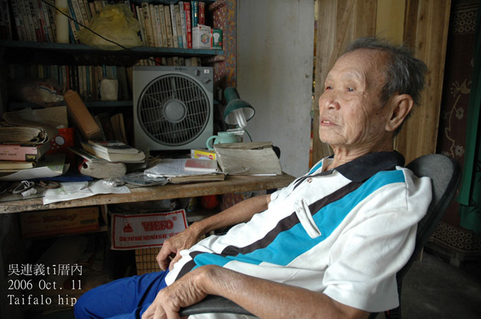 蔣為文 前一暫仔接tio̍h ùi越南退tńg來ê批件,詳細kā看竟然是「吳連義」老先生kap in家庭成員ê相片。原底心甘內chhia̍k chi̍t-tiô,m̄-chai發生啥代誌,tng-tong前天讀tio̍h許昭榮先生刊tī自由時報ê「越南最後一個台灣兵」liáu,chiah hiông-hiông頓悟。 2006年10月我tī越南社科院史學所「丁光海」教授ê saⁿ-kāng之下,來到越南北pêng寧平省莊脚ê吳連義厝內。Hoān-sè自1994年吳連義bat短暫tńg來台灣二個月liáu ê十gōa冬來,就無台灣同鄉ê kiâⁿ-kha-kàu。雖罔我m̄-bat hām伊見過面,tng我kiâⁿ到親像台灣早期低脚厝ê吳老先生ê厝內,伊已經目屎kâm目墘。伊一直出力想beh控制因為破病soah無聽話ê身軀thang迎接來自台灣ê同鄉。我真自然就用台語kā打招呼,伊kan-taⁿ用激動ê目屎回應。根據in某Ninh Thị Bé ê講法,吳老先生一冬前因為poa̍h-tó soah變成行動不便mā無法度開嘴講話。 吳連義tòa ê所在雖罔真簡單,m̄-koh伊有一冊架á日文寫ê有關台灣ê冊,像講《台灣の前途》《台灣の政治》《激動のなかの台灣》《李登輝學校の教え》《台灣がめざす未來》《台灣に革命が起きる日》。Chit-kóa冊就tī他鄉外里陪伴伊度過思念故鄉ê日子,可能mā是án-ne chiah感動天公伯á ,chiah ē-tàng ho͘二個無熟無悉ê台灣人tī千里遠ê他鄉kâm目屎相會。 吳連義tī 1944年hō͘日本「台灣拓殖會社」調派去越南做sit,二次戰後伊留tī越南koh加入越共部隊協助越南獨立建國ê大業。10月份ê拜訪本底beh訪問吳老先生對tio̍h 1945年日本投降liáu蔣介石代表聯軍佔領越南北部ê代誌是m̄是有深入ê了解,可惜伊已經無法度開嘴。Chìn-chêng kúi年若ē-tàng khah chá chai-iáⁿ吳老先生ê下落,hoān-sè ē-sái ùi伊hia了解是án-chóaⁿ越南領導者胡志明ē-tàng看thàng蔣介石佔領越南ê野心koh近一步聯合法國勢力kā蔣介石趕出越南ê歷史;Kâng hit時ê台灣mā hō͘蔣介石佔領,可惜當時台灣ê知識份子soah無像胡志明hit-khoán ê眼光,致使chit-mái ê台灣tiāⁿ-tiāⁿ tio̍h受中國chiù-chhàm ê折磨。 Hoān-sè吳連義老先生當初mā是為tio̍h伊來自千里外ê同鄉所受tio̍h ê折磨chiah流lo̍h無盡ê目屎。M̄-koh chit-ê答案已經tòe tio̍h伊ê落土soah tâi tī千里外ê他鄉。