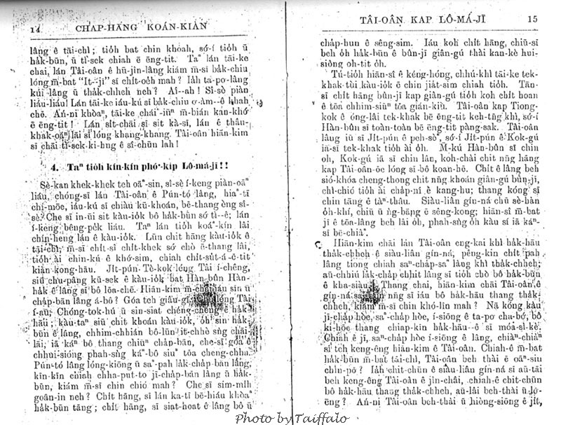 Chhoa Poe-hoe e sia-hoe pheng-lun e chheh "Chap-hang Koan-kian" (1925) 蔡培火e社會評論e冊 Opinions on Ten Issues by Chhoa Poe-hoe, pp 14-15 (1925)