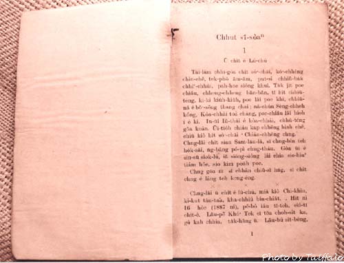 Si-chiong peng-iu Iu Eng-khun sou sia e "Soe-han e Si-chun" (Han-Lo pan-pun 1996) 視障朋友尤榮坤所寫e "My Childhood" by Iu Eng-khun, a blind musician (in the mixture of Hanji and Peh-oe-ji, 1996)